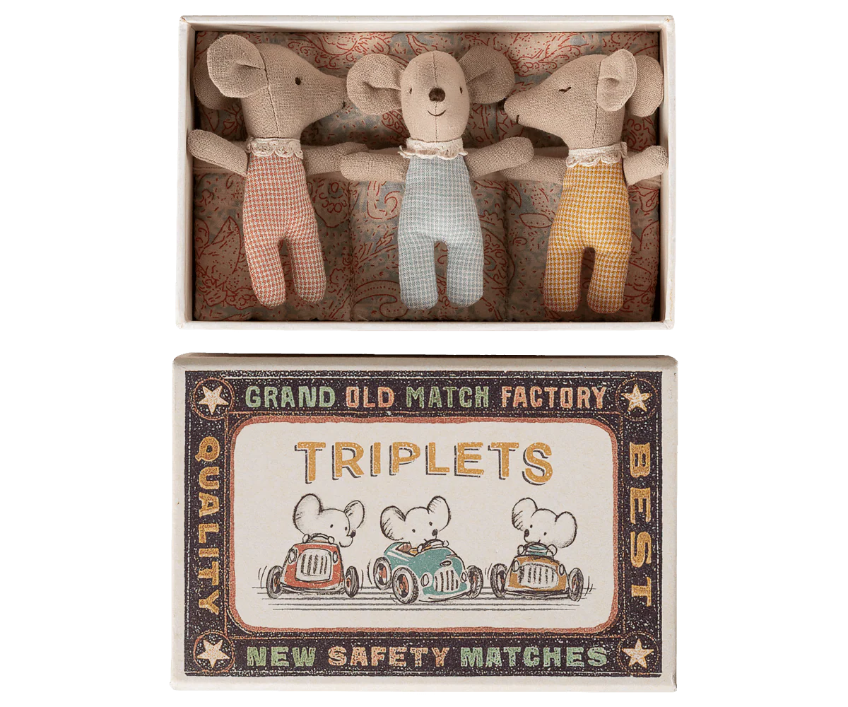 PRE-ORDER Maileg, Triplets, Baby Mice in Matchbox - Checker **Due June**